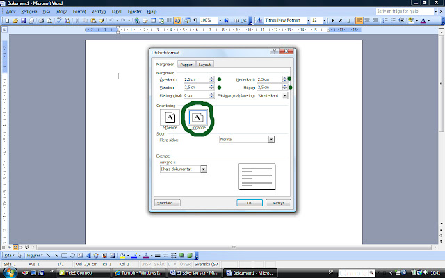 Well, when i opened a new document i hit "file" and something like printing options. change your paper rotation to horizontal and put a zero in all the marginals. when you hit ok it will say that you will have to adjust the marginals, hit adjust and it does it for you!